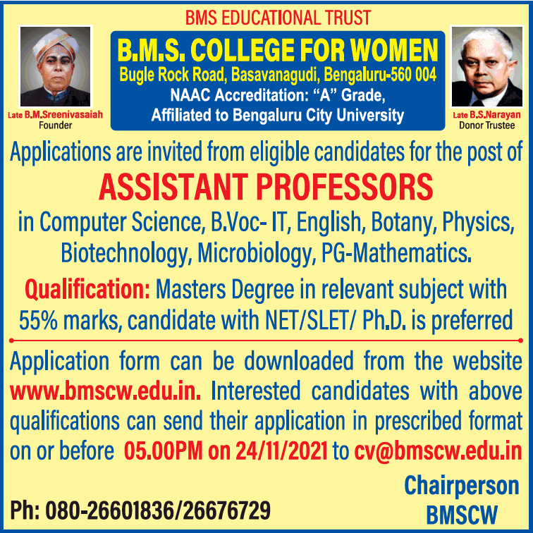 B M S College For Women Bengaluru Wanted Assistant Professors Facultyplus
